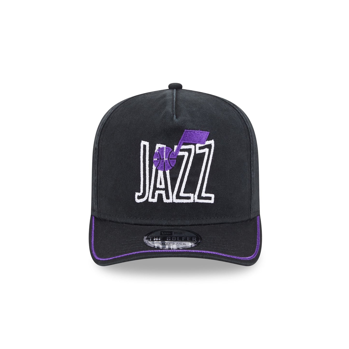 The Utah Jazz Chainstitch Golfer features an embroidered Jazz wordmark and logo at the front panels with an NBA Logoman above a snap closure at the rear and a gray undervisor.